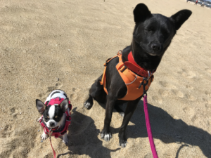 はじめは幸吉も嵐ちゃんもRUFWEAR製のハーネスを選びました。胸のあたりが生地で保護されているので引っ張った状態でも胸で力が分散され、特に苦しくもなくお散歩のアイテムとなりました。