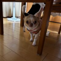 最初の2時間程は私の目が光っているので他のマーキングしていた場所ではオシッコをせずにオシッコの匂いがするトイレシートに3回ほどトイレというよりはマーキングでした。まぁトイレシートにしてくれたので”造り大喜び”の演技して「いい子!!」っていってお菓子をあげました。