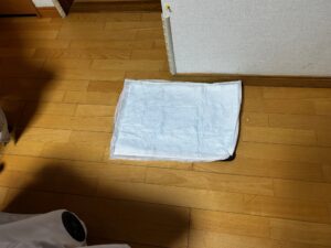 打開策としてその辺に撒き散らしたオシッコをトイレシートに吸収させそのシートをトイレシートの下に挟むようにしました。そうしたらトイレシート上で匂いをかぎオシッコしてくれました。すかさず「いい子!!」